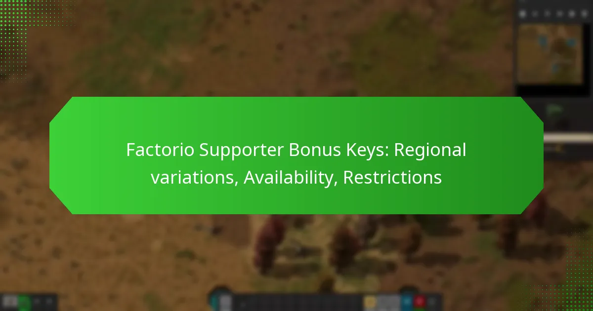 Factorio Supporter Bonus Keys are special game keys that enhance the gaming experience while supporting the developers. Their availability and types can vary significantly by region, with exclusive keys and distinct pricing structures affecting access to these bonuses. Players should stay informed about current promotions and regional offerings to ensure they can acquire these valuable…